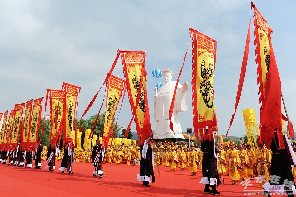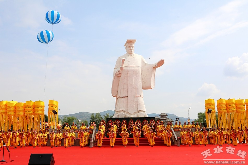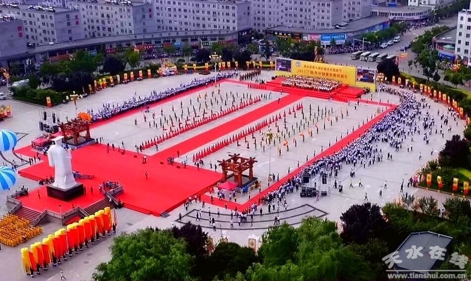 9时50分,天水市委书记王锐宣布祭祀典礼正式开始。
