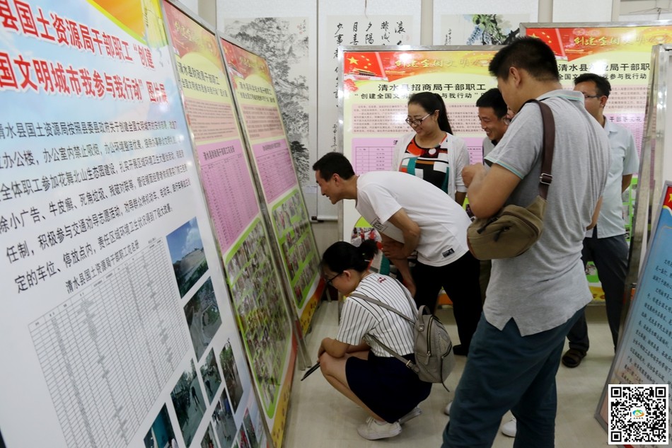 在创建全国文明城市的攻坚阶段,为全面展现广大干部职工在“创城”过程中所体现出的良好风貌,发挥先锋引领作用,形成示范效应,让更多的人参与到创建工作中来。日前,清水县举办了全县干部职工“创建全国文明城市我参与我行动”图片展,用一幅幅生动的图片记录广大干部职工在创城工作的点滴故事。