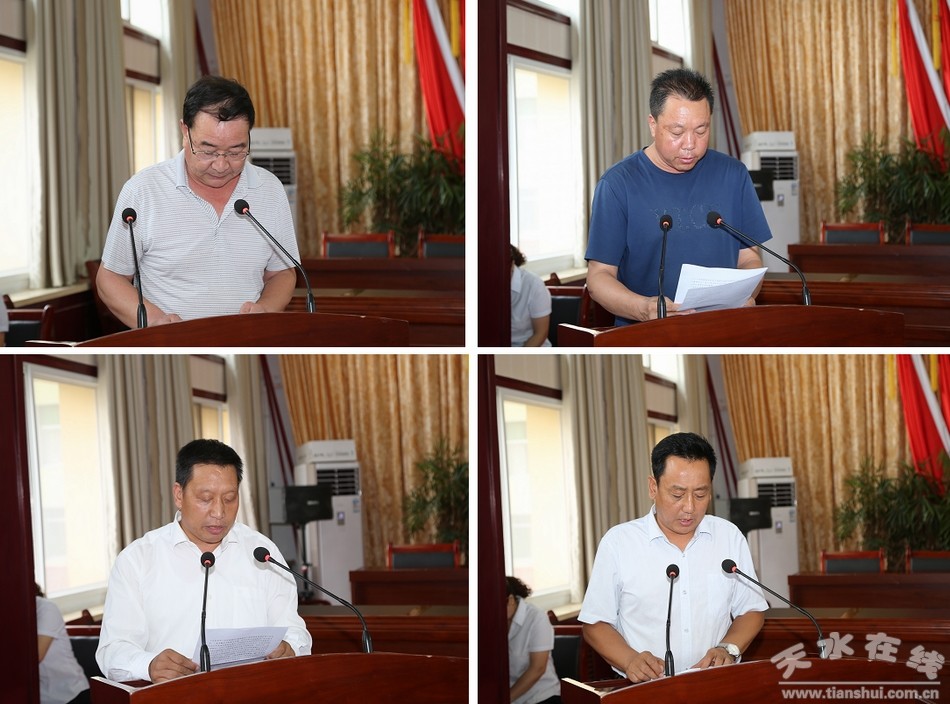 (县工信局、国土局、畜牧局、环保局负责人作表态发言)