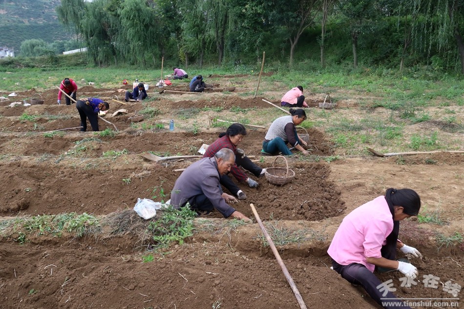 当前,正是清水半夏全面采收的黄金时间,在白沙镇白沙村半夏种植示范户蒋建祥的田地里,十几名采收工人排成一线,忙着低头采收,蒋建祥则不停地来回穿梭在其中。