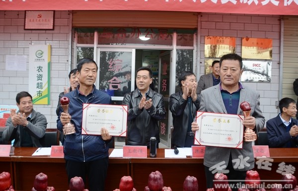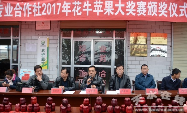 10月24日,清水县金集镇金果果品种植农民专业合作社举办2017年花牛苹果大奖赛颁奖仪式。清水县委副书记王新强出席颁奖仪式;县农业局、果业局、科协、工商局、商务局等负责人及金果果品合作社社员参加了颁奖仪式。