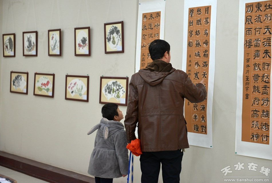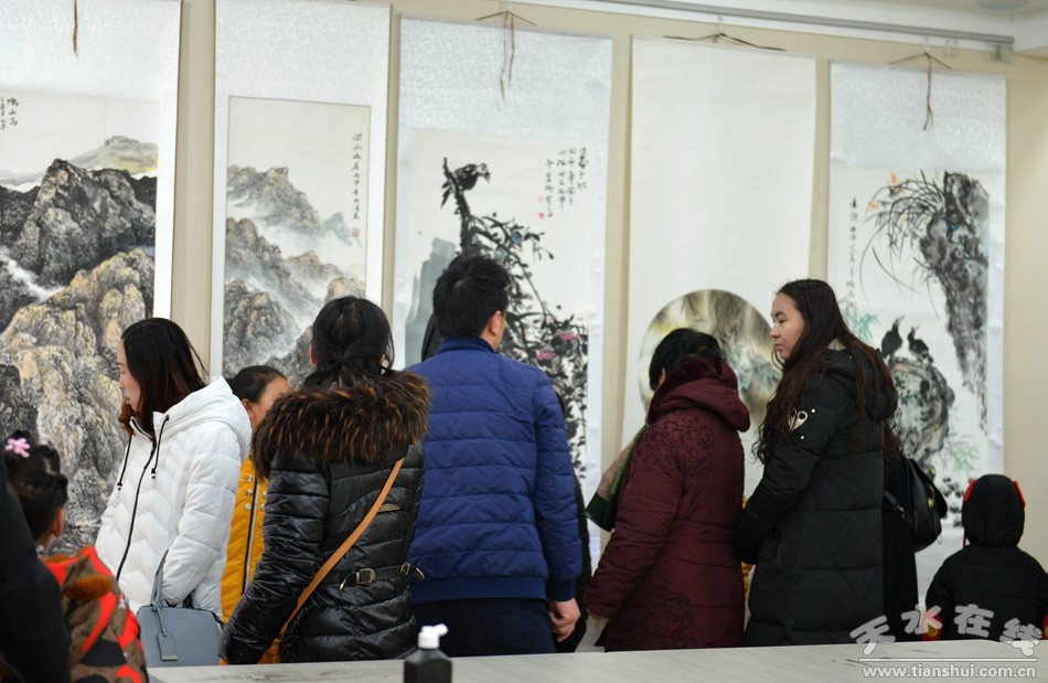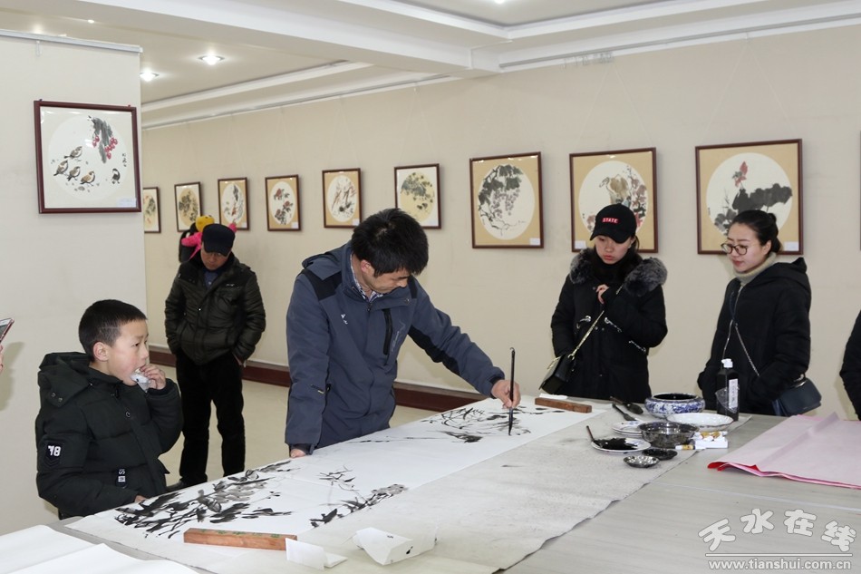 2月4日上午,清水县“水墨丹青——喜迎新春”书画展开展。本次书画展由县委宣传部、县文联、县文化馆主办,书画展上,不同形式、不同内容的书画作品诠释了过去一年,清水本土书画艺术爱好者在党的十九大精神指引下,幅幅作品既有艺术性又具思想性,体现了对这片古老土地的眷顾之情,充分展现了当前清水书画作者的艺术水平和精神风貌,为欢庆的节日增添了一份高品位的文化大餐。