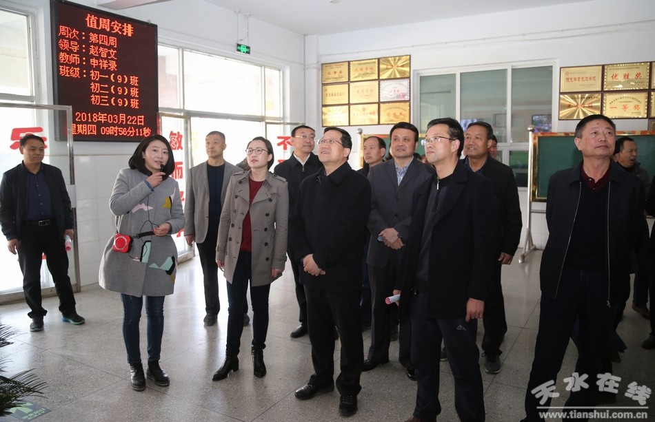 3月22日,市人大常委会副主任蒲朝晖带领执法检查组深入清水县开展《中华人民共和国教师法》执法检查。清水县人大常委会主任周伟东,县人大常委会副主任毕德祥,县政府副县长李宝玲及部分驻县市人大代表陪同检查。