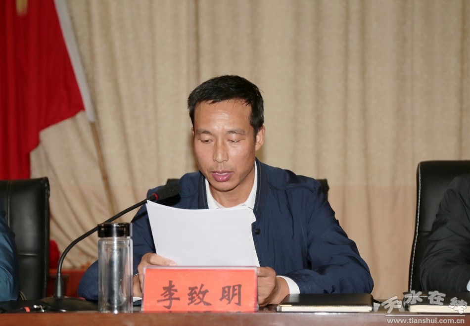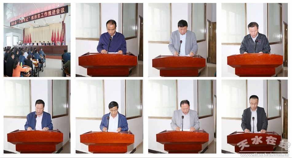 市人大常委会副主任、清水县委书记刘天波作了讲话,他指出,今年以来,省、市领导密集调研督导扶贫工作,重视程度之高、推进力度之大前所未有,释放出了带头抓扶贫、促落实、见成效的坚定决心和鲜明态度,为各级干部特别是“三级书记”作出了示范。全县各级各部门和广大党员干部要旗帜鲜明讲政治,牢固树立“四个意识”,坚持不懈在学懂弄通做实习近平总书记关于扶贫工作的重要论述精神上下功夫,持之以恒用以武装头脑、统一认识,汲取强大动力、找准思路方法、坚定决心信心,义无反顾地投身到打赢脱贫攻坚战这场伟大斗争中去,以愚公移山的志气、敢死拼命的精神、滚石上坡的劲头,全力向贫困发起总攻,确保高质量完成年度脱贫攻坚任务。