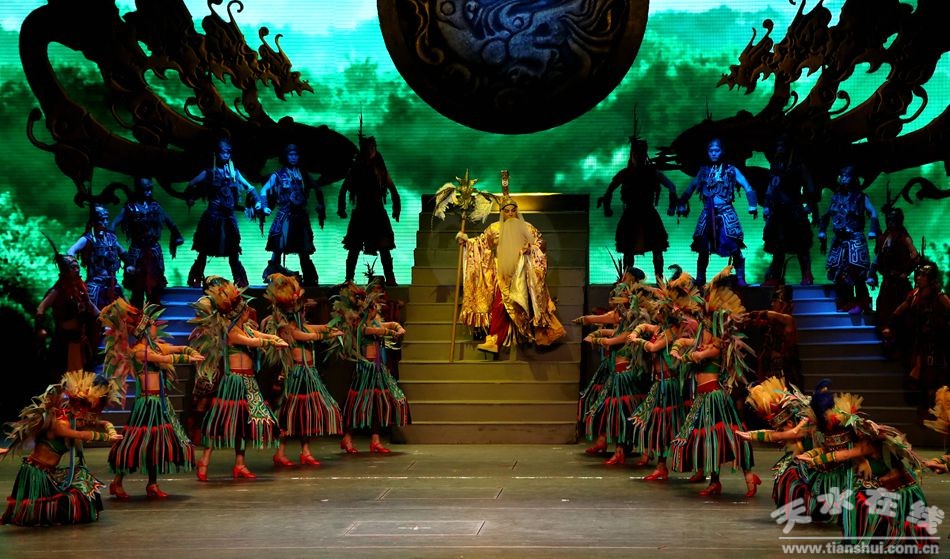 第一场:轩辕出生在清水轩辕丘,参加氏族部落比武大赛脱颖而出,拒绝了美丽的雨师,与一见钟情的西陵氏少女嫘祖结成姻缘。