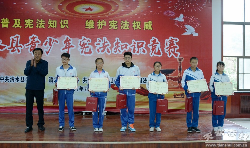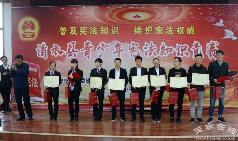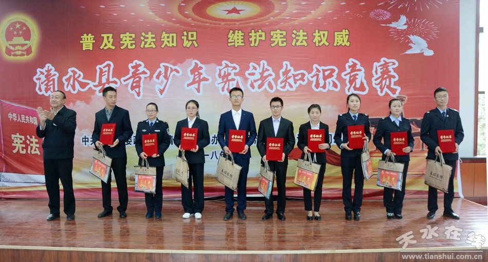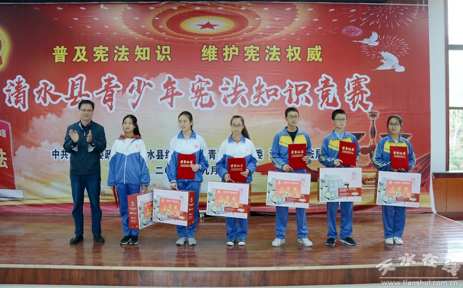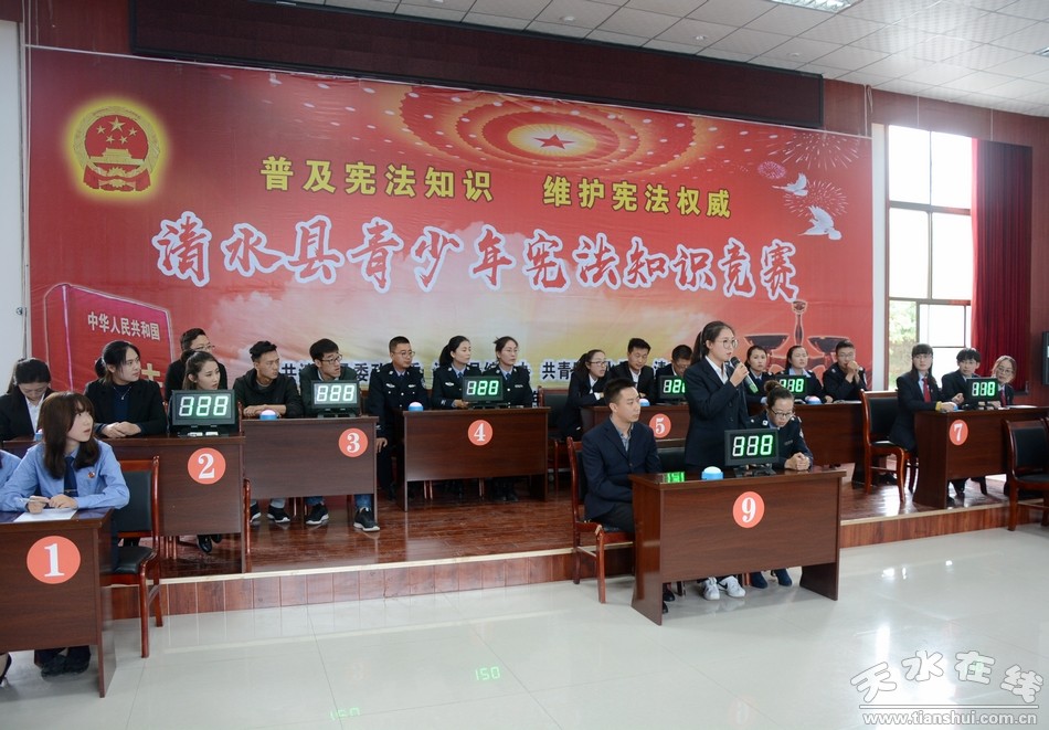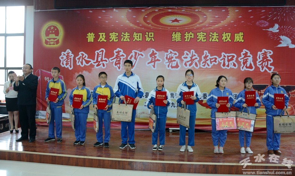 为了深入贯彻党的十九大及十九届二中、三中全会精神和《青少年法制教育大纲》,广泛宣传普及新修订的《中华人民共和国宪法》,弘扬宪法精神,树立宪法权威。9月26日,清水县举行青少年宪法知识竞赛活动。