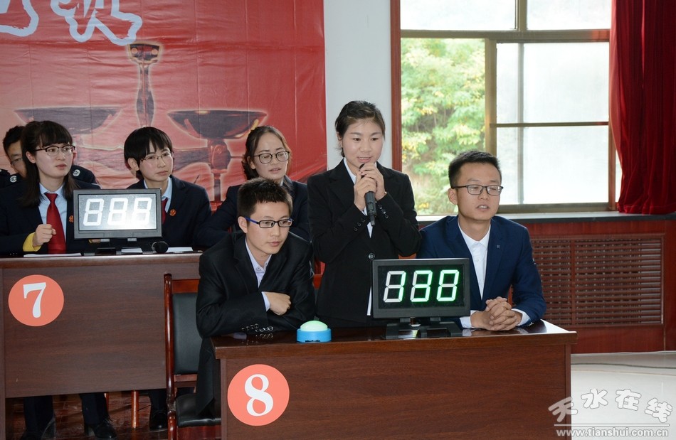 本次竞赛活动由清水县委政法委、县综治办、共青团清水县委、县司法局共同举办,比赛活动共有17支代表队参赛,分少年组和青年组,少年组参赛选手来自清水一中、清水三中、清水五中、清水六中,青年组来自党群口、宣教口、综合口、经贸口、农口、县法院、县检察院、公安局、司法局,设立仲裁席,公证席,确保竞赛公开、公平、公正。