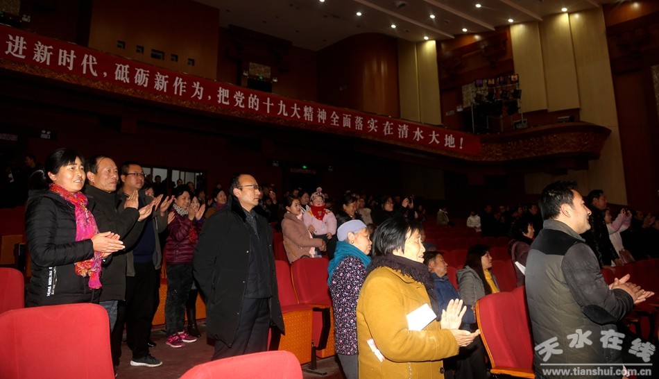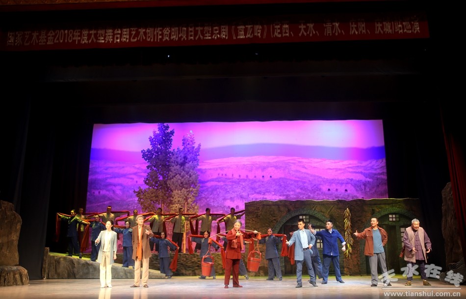 11月17日晚,由国家艺术基金管理中心主办,省文化厅、甘肃演艺集团承办的国家艺术基金2018年度舞台艺术创作资助项目——大型原创现代西部京剧《盘龙岭》在清水县巡演。清水县委常委、宣传部长宋贤雄与广大干部群众在轩辕大剧院一起观看了演出。