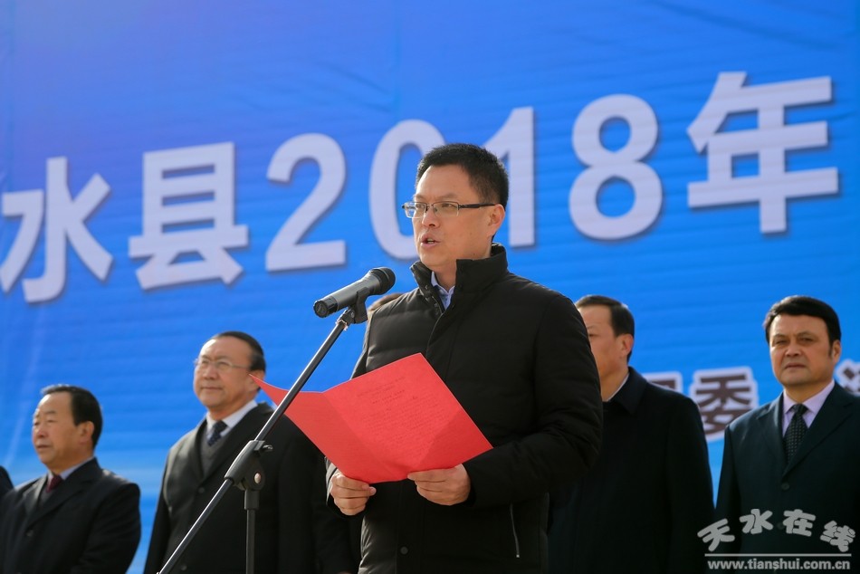 (县委常委、副县长程伯义宣读《清水县关于开展2018年“宪法宣传周”活动的通知》)