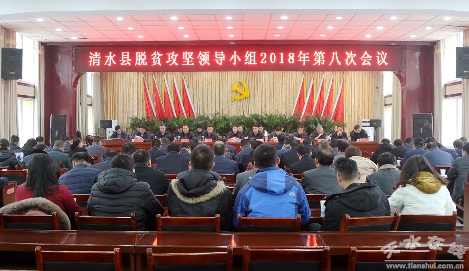 12月20日下午,市人大常委会副主任、清水县委书记、县脱贫攻坚领导小组组长刘天波主持召开全县脱贫攻坚领导小组2018年第八次会议。他强调,要深入学习贯彻习近平总书记关于扶贫开发系列重要论述和省委林铎书记调研我县时的讲话精神,切实增强整县脱贫摘帽的责任感、紧迫感、使命感,提高政治站位,强化责任担当,以最大的决心、最强的信心、最准的措施、最实的作风、最严的问责,破釜沉舟、背水一战,确保如期摘下贫困帽子,坚决打赢脱贫攻坚这场新时代的硬仗。