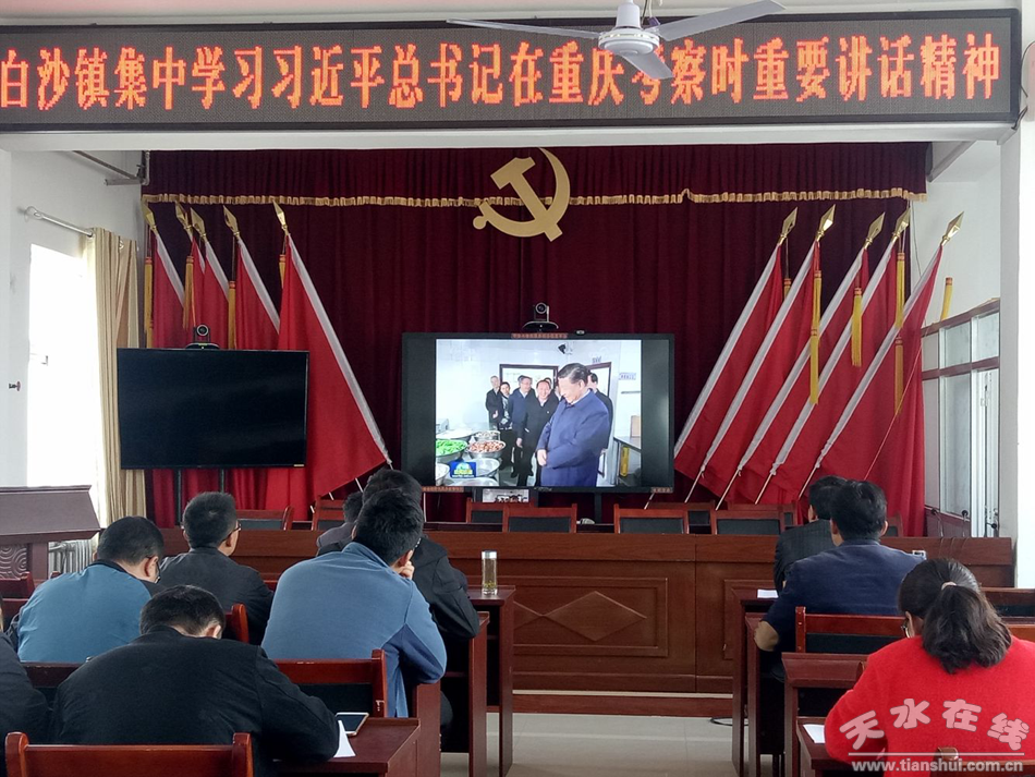 当天,清水县各乡镇、村组干部和第一书记也通过各种形式学习了习总书记在重庆调研时的重要讲话精神,大家表示,在脱贫攻坚战进入决胜的关键阶段,习总书记的讲话精神更加鼓舞了大家的士气,明确脱贫攻坚的重点发功方向,大家将迅速传达并贯彻落实好讲话精神,一鼓作气、顽强作战,不获全胜决不收兵,坚决打赢打好脱贫攻坚这场硬仗。