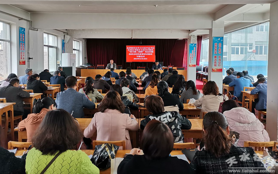 习总书记的重要讲话精神犹如和煦春风,迅速吹遍清水大地,4月18日,清水县组织广大干部群众召开专题学习会议第一时间传达习总书记在“两不愁三保障”突出问题座谈会上的重要讲话精神,县四大组织和县直各部门干部和各乡镇、村组(社区)群众、帮扶干部、第一书记则通过网络、手机客户端自发收听收看了新闻联播视频,认真学习了习近平总书记对做好脱贫攻坚工作的新指示和新要求。