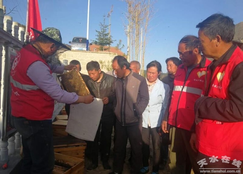 清水县2017年底到2018年依托中蜂养殖项目采购并发放6500箱中蜂给650户农户,今年依托六大产业扶持资金,让农户自主选择购买数量,极大提升了群众发展产业的弹性。小小蜜蜂寄托了广大贫困户对美好生活的向往,看着忙碌的蜂群在花丛中穿梭,大家对未来信心更足了。