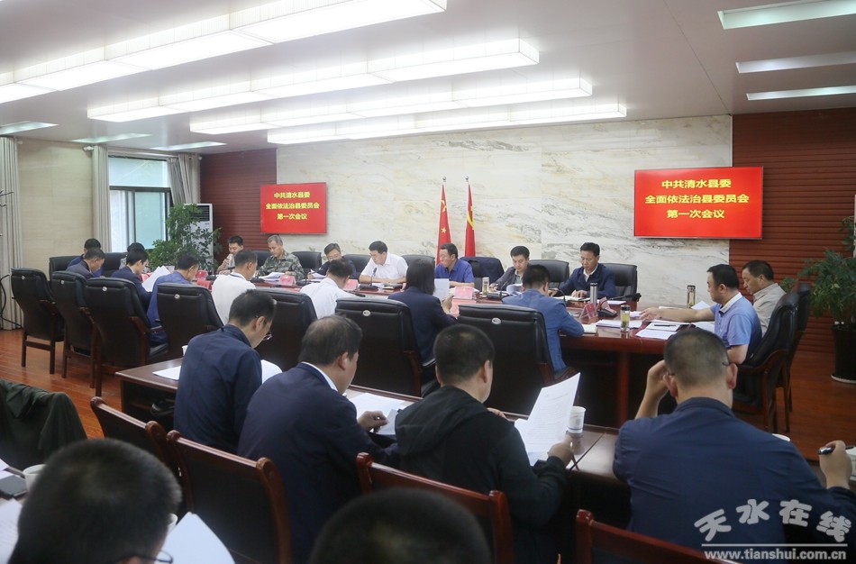 会议传达学习了中央全面依法治国委员会第一次、第二次会议精神,省委全面依法治省委员会第一次会议精神,市委全面依法治市委员会第一次会议精神。审议通过了县委全面依法治县委员会《工作规则》、协调小组《工作规则》、办公室《工作细则》、《2019年清水县依法治县工作要点》和《中共清水县委全面依法治县委员会协调小组成员名单》以及《中共清水县委全面依法治县委员会办公室成员名单》。