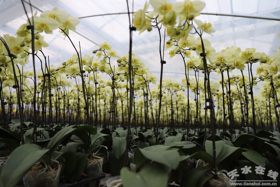 近日,记者来到位于清水县永清镇温沟村的花卉产业扶贫示范园区。走进大棚,花卉园区成排成行种植的仙客来、蝴蝶兰一望无际,花姿婀娜、颜色鲜艳,工人们有序的忙碌着,施肥、浇水、打包,大家各司其职、每一个步骤都进行的有条不紊。