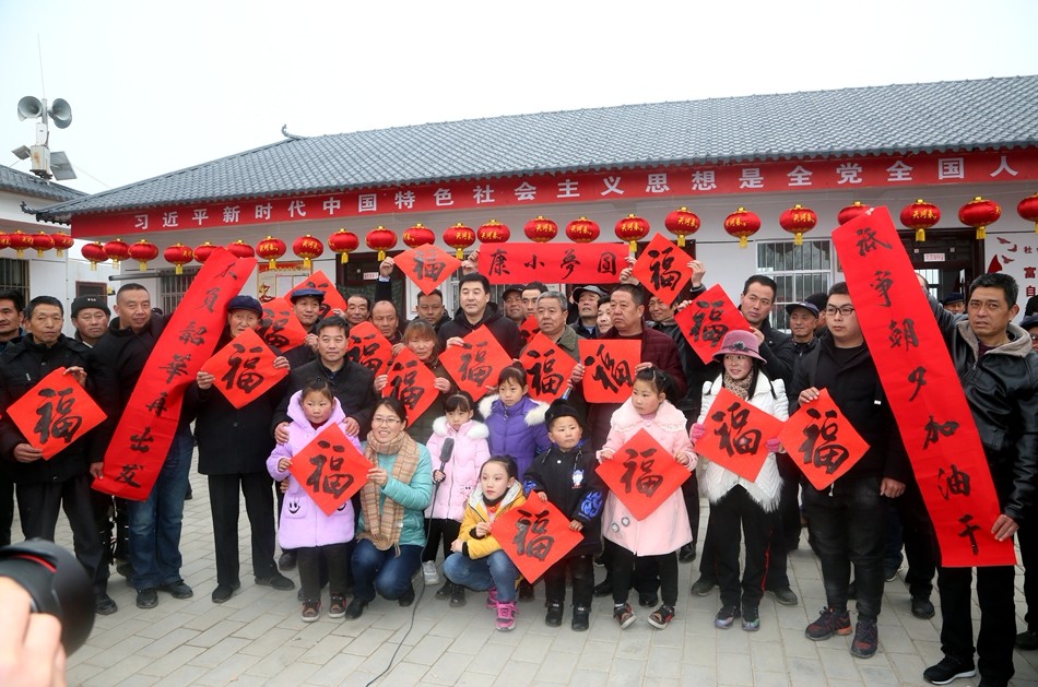 在写春联现场,县文联的书法家们挥毫泼墨,为群众送上新春的祝福。刘天波来到人群中,饱蘸笔墨,深情为群众写下一个个“福”字,表达对人民群众过上幸福生活的美好祈愿。在场群众争先恐后,一个个上前争抢福字,接福纳祥迎新春、贺新年,人人喜笑颜开,喜庆热闹的氛围弥漫在梁山村上空。