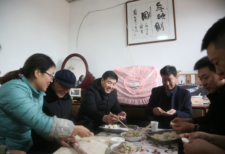 在村书记冯小明家中,刘天波、王怀珍、张铖、李亮和梁山村的党员群众围座在一起,包饺子,聊家常,详细了解全村党员发展现状及产业培育、群众增收等情况,鼓励他们牢记总书记的嘱托,守初心、担使命,充分发挥党员的先锋模范作用,挺起梁山村小康建设的脊梁。刘天波希望,梁山村要积极推行“党支部+合作社+贫困户”的党社联建模式,引导带动贫困群众积极发展以苹果、花椒为主的主导产业,着力提高产业收益,全力助力脱贫攻坚。