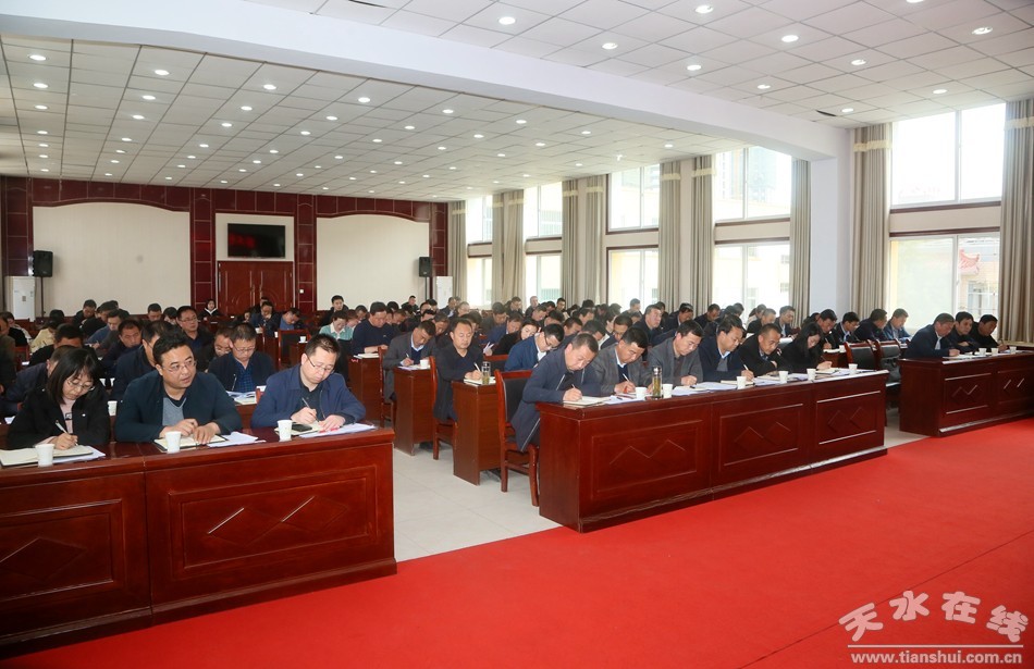 县领导李致明、李振、张炜、秦永斌、宋贤雄、王怀珍、张铖、安伟、马小平出席会议,18乡镇党委书记、乡镇长、各部门单位主要负责人、业务人员参加会议。