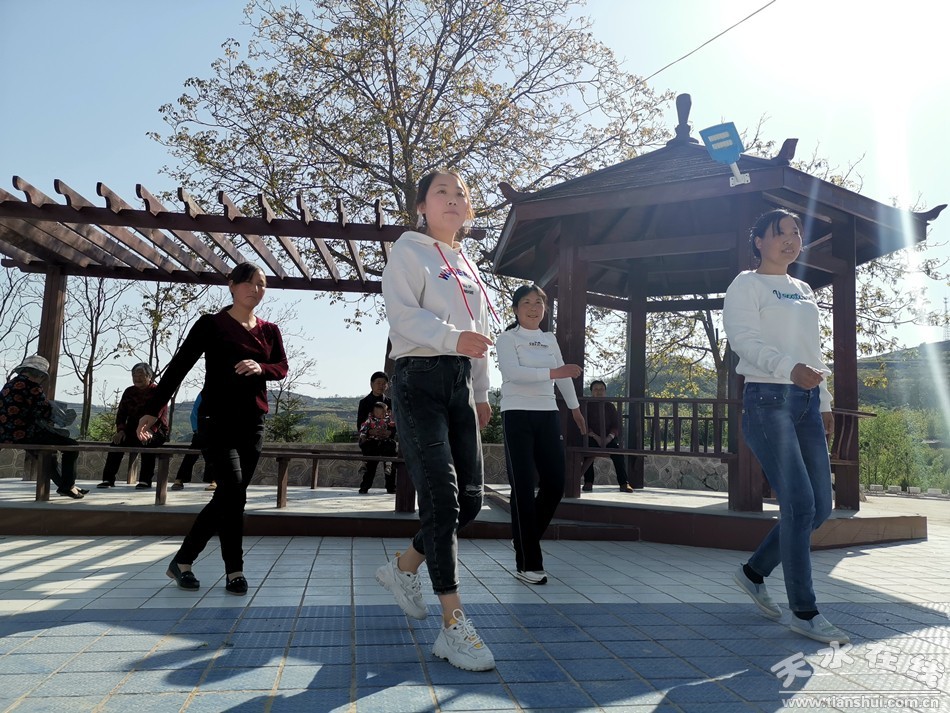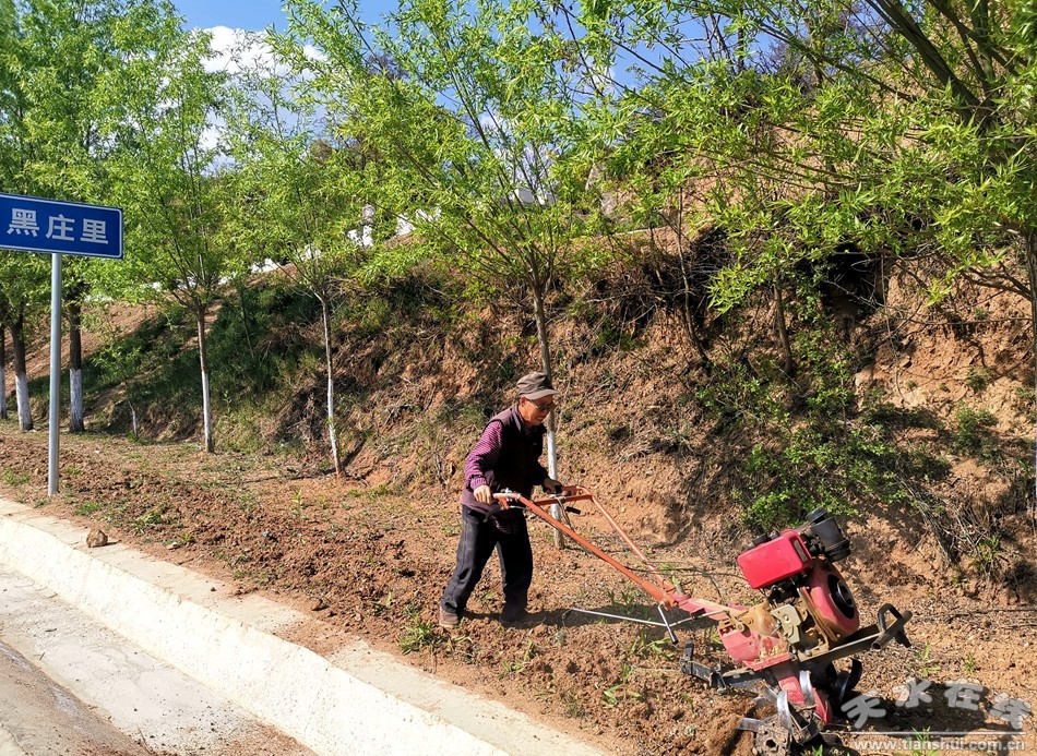 4月27日,在清水县丰望乡黑庄村,村民们正忙着对公路沿线的空白地块种植格桑花,大家心往一处想,劲往一处使,不一会功夫,一段段的空白地就被种上了花籽。走进黑庄村,道路两旁的柳树随风飘曳,业兴民富的美丽乡村姿影随处可见,干净整洁的农家院落生态宜居,令人赏心悦目、沉醉其间,宽广漂亮的文化广场内,村里的妇女们正在跟着欢快的音乐,跳着广场舞,一派幸福和谐景象。