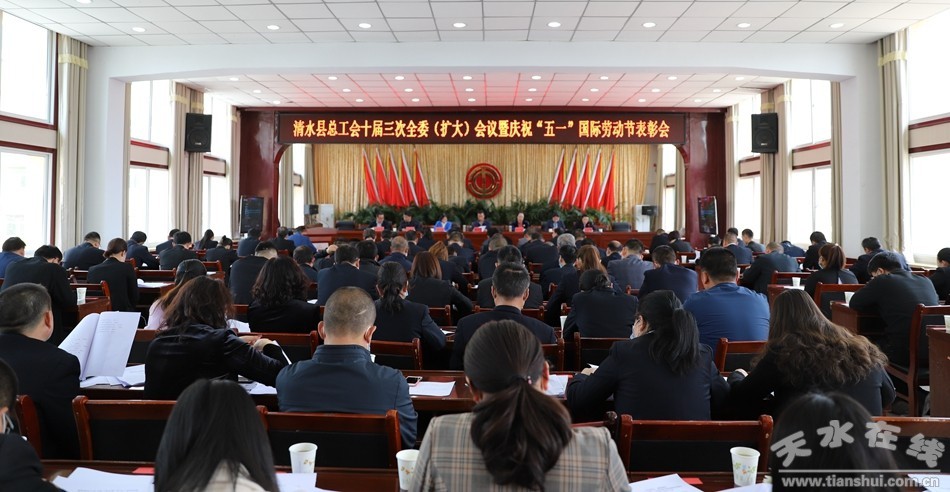 4月29日上午,清水县总工会召开十届三次全委(扩大)会议暨庆祝“五一”国际劳动节表彰会。会议传达了市总工会五届九次全委会议暨“五一”劳动奖表彰大会精神,王彦同志代表县总工会第十届常务委员会作了工作报告,表彰了全县工会工作先进单位和先进个人、“最美劳动者”网络摄影大赛获奖人员;签订了2020年度工会重点工作目标管理责任书。