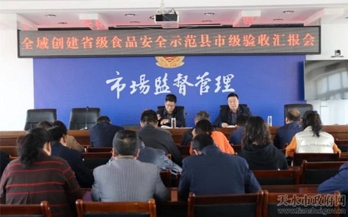 按照《甘肃省食品安全示范城市标准》和《甘肃省食品安全示范城市评价与管理办法(暂行)》有关要求,初评验收组听取了清水县创建工作开展情况汇报;对照县政府创建自评报告,从7个方面48个分项,对申报资料进行了审核;实地查看了部分食品生产经营单位及县市场监管局机关等创建示范点;对创建工作中存在的问题和薄弱环节等进行了现场指导。