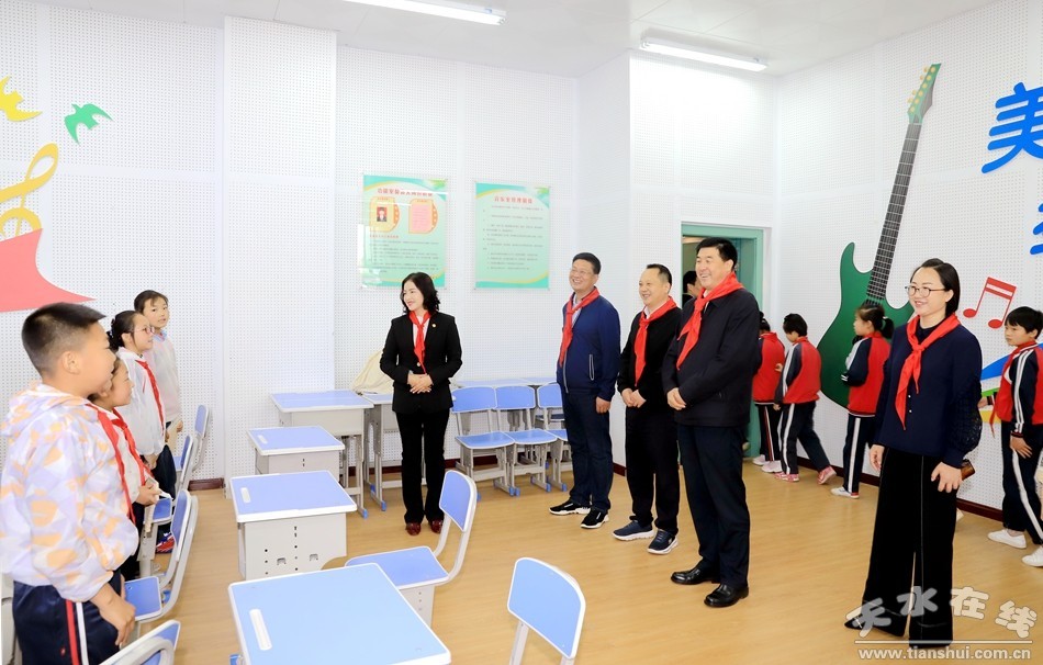 在原泉小学,刘天波一行观看了师生作品和才艺表演,别出心裁的书画作品展现了师生们积极向上、勇于创造的心志。在谜语竞猜现场,他兴趣十足的和孩子们一道猜起了字谜,体验童真童趣;在象棋亲子游戏活动中,他驻足观看少儿棋手与家长对弈,不时为小棋手支招。刘天波说,优秀传统文化是民族之根、民族之魂,学校要让学生更多接受优秀传统文化的滋养,感受传统文化的熏陶,培养德智体美全面发展的好学生。