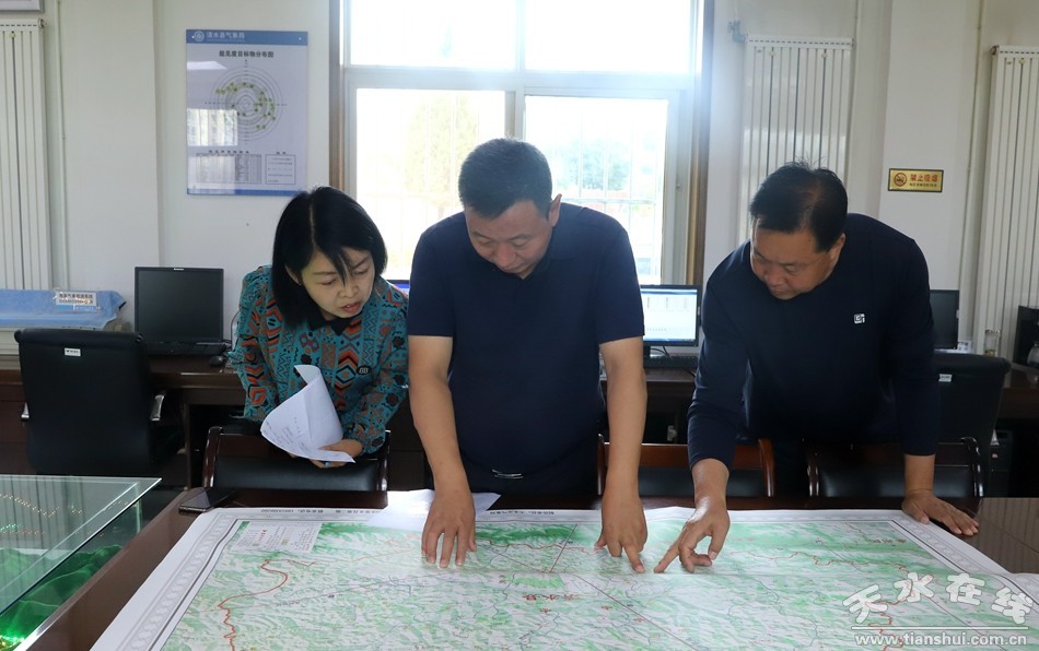 当天下午,马越垠一行来到县气象局,听取了气象局关于当前的气象服务情况、未来天气形势的汇报,查看当前的雷达图、卫星云图、雨量分布图和自动站等实时气象资料,认真了解近期防汛工作开展情况及雨水情情况。随后,马越垠一行又深入水务局防汛指挥中心,通过视频对18乡镇防汛工作进行了调度,详细了解各乡镇防汛应急演练、防汛物资储备、值班值守等工作开展情况,对全县防汛工作进行再安排、再部署。