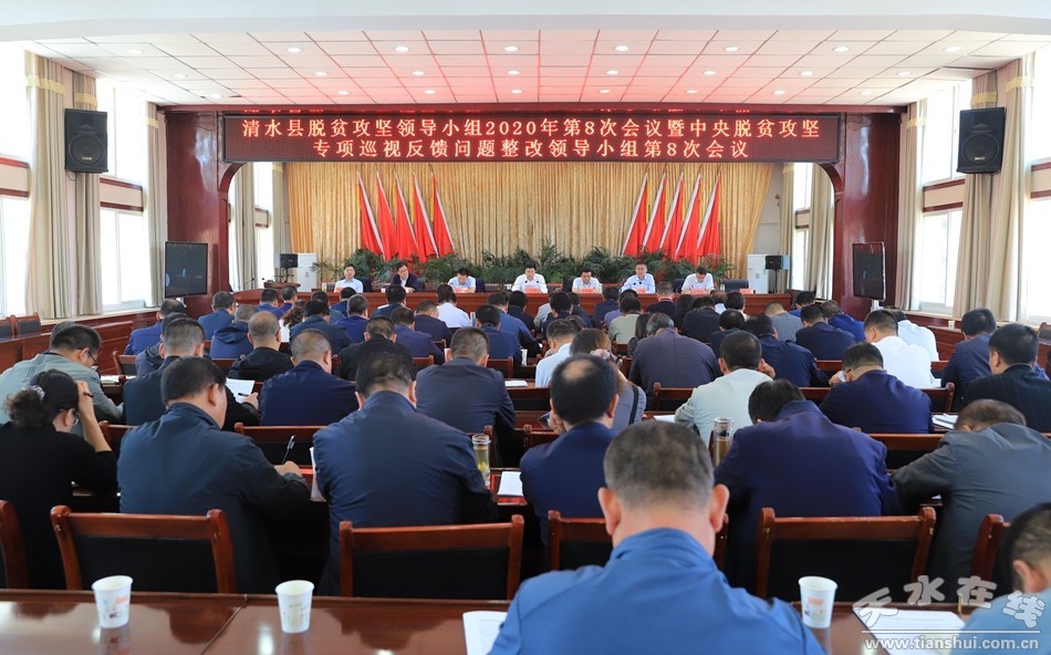 8月26日上午,市人大常委会副主任、清水县委书记刘天波主持召开县脱贫攻坚领导小组第8次会议暨中央脱贫攻坚专项巡视整改领导小组第8次会议,深入学习贯彻习近平总书记关于扶贫工作的重要论述,全面贯彻落实国家和省上脱贫攻坚有关会议精神,研究部署全县脱贫攻坚重点工作,动员全县上下一鼓作气夺取脱贫攻坚战全面胜利。