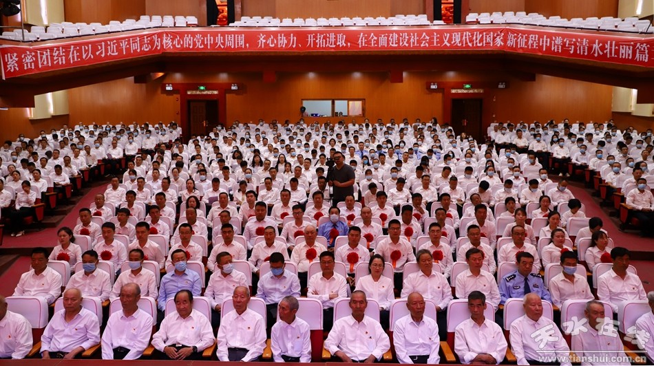 百年栉风沐雨,百年波澜壮阔。6月30日,在中国共产党成立100周年之际,清水县“两优一先”表彰大会在轩辕大剧院召开,庆祝党的百年华诞,回顾党的光辉历程,讴歌党的丰功伟绩,为老党员代表颁发“光荣在党50年”纪念章,表彰全县各条战线上涌现出的优秀共产党员、优秀党务工作者和先进基层党组织,进一步激励各级党组织和广大党员不忘初心、牢记使命,砥砺前行、锐意进取,奋力谱写全面建设社会主义现代化新清水的壮丽篇章。