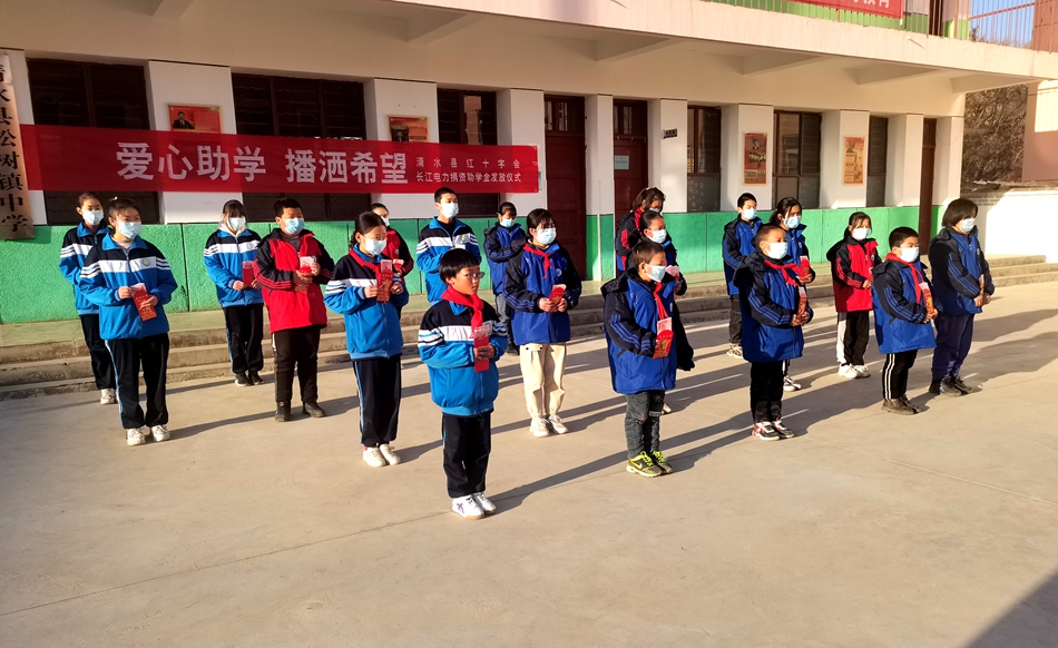 12月3日,国家能源局联系爱心企业长江电力公司为松树镇20名中小学生每人发放爱心助学金500元,总计1万元,助力他们健康成长。清水县政府副县长郭冠亚参加发放仪式。