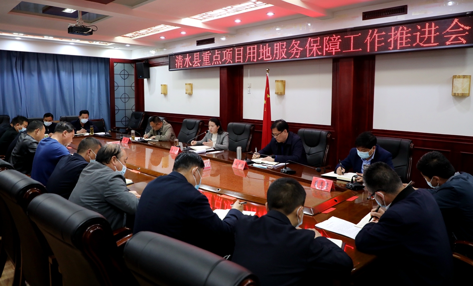 3月17日,清水县委副书记、县长李菊霞主持召开项目用地服务保障工作推进会,分析研判项目建设工作推进形势,安排部署重大项目建设用地保障工作。她强调,用地服务保障是推动项目落地的重要支撑,要切实增强责任感和紧迫感,千方百计破解项目用地要素保障瓶颈,确保重点项目建设有力有序推进。