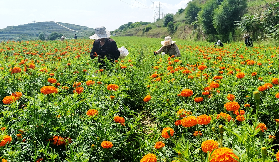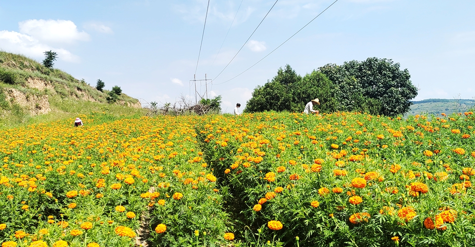 “我们村今年共种植了106亩万寿菊,长势良好,按照今年的行情,预计为孙山村实现村集体经济收入14万元。现在正在采摘头茬花,每天能用工20余人,每人每天发100元,预计全村20余户群众每户能增收2000元。”孙山村村委会副主任郭明录说。
