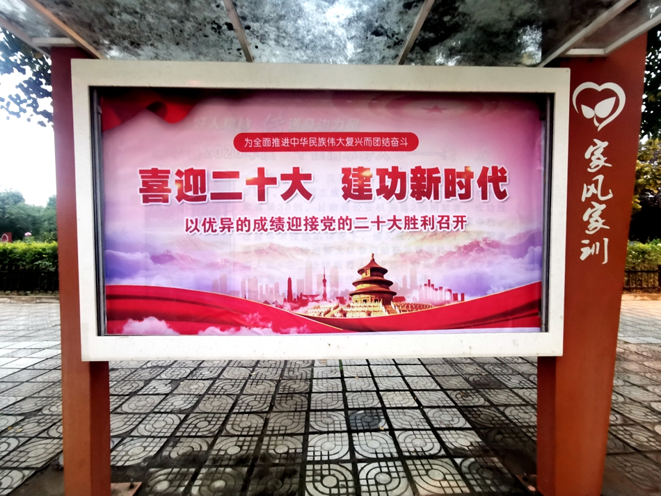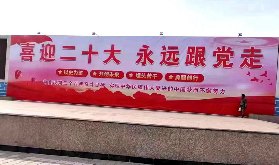 在各镇主要道路两侧、镇机关所在地、新时代文明实践所(站)、村综合服务中心、乡村舞台、农家书屋等建筑外墙、场地围墙和村社固定宣传栏也布设了标语横幅,表达干部群众对党的二十大胜利召开的热烈期盼。