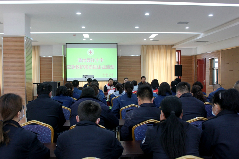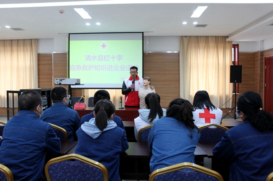 为了持续推进应急救护培训进机关、进校园、进社区、进企业、进农村“五进”活动,有效提高工会系统企业员工安全防范意识、应急救护知识技能以及应对突发事件时的应急处置的能力,弘扬“人道、博爱、奉献”的红十字精神。11月17日,清水县红十字会在清水县运安检测公司会议室为县总工会、县运安检测公司、国网清水供电公司干部、企业员工开展救护员线下实操培训活动。县红十字会专职副会长闫立中、县总工会主席王彦出席培训活动并讲话,工会干部、企业员工共50人参加培训。