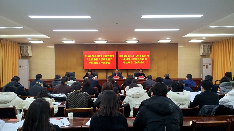 会上,宣读了《清水县2023年元旦春节系列文化旅游体育活动方案》《“轩辕故里涌春潮 康养福地展新姿”2023(癸卯)年清水县春节综艺晚会工作方案》。