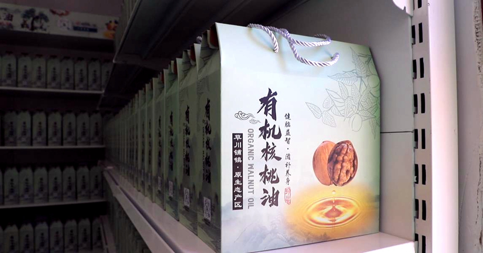 草川铺镇黄崖村党支部书记白俊亮介绍说,“我们村基本形成了从果品种植、果园管理到核桃系列产品加工的核桃产业链。另外,我们注重打造优质产品,挑选出一些优质的核桃仁进行打造一批高级核桃油,然后在网络直播带货和线下相结合销售。注册商标‘印象黄崖’,建立网上商城和微信小程序,在平台上进行销售。”