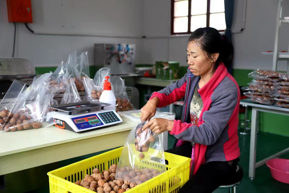 车间内,映入眼帘的是核桃油、鲜核桃仁等各式各样精深加工产品。鲜榨核桃油生产线、标准化厂房、线上销售设备及先进生产工艺令人耳目一新。核桃初加工车间项目的投入使用,为30户附近群众提供就业岗位,也为村集体经济发展贡献了一份力量。