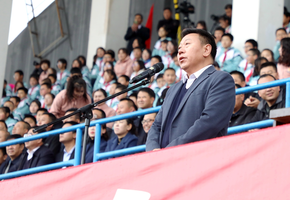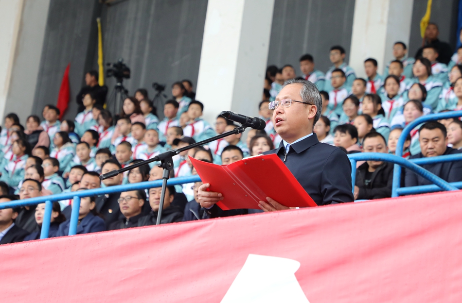 市政协副主席、清水县委书记马越垠宣布清水县第十三届中小学生田径运动会开幕。