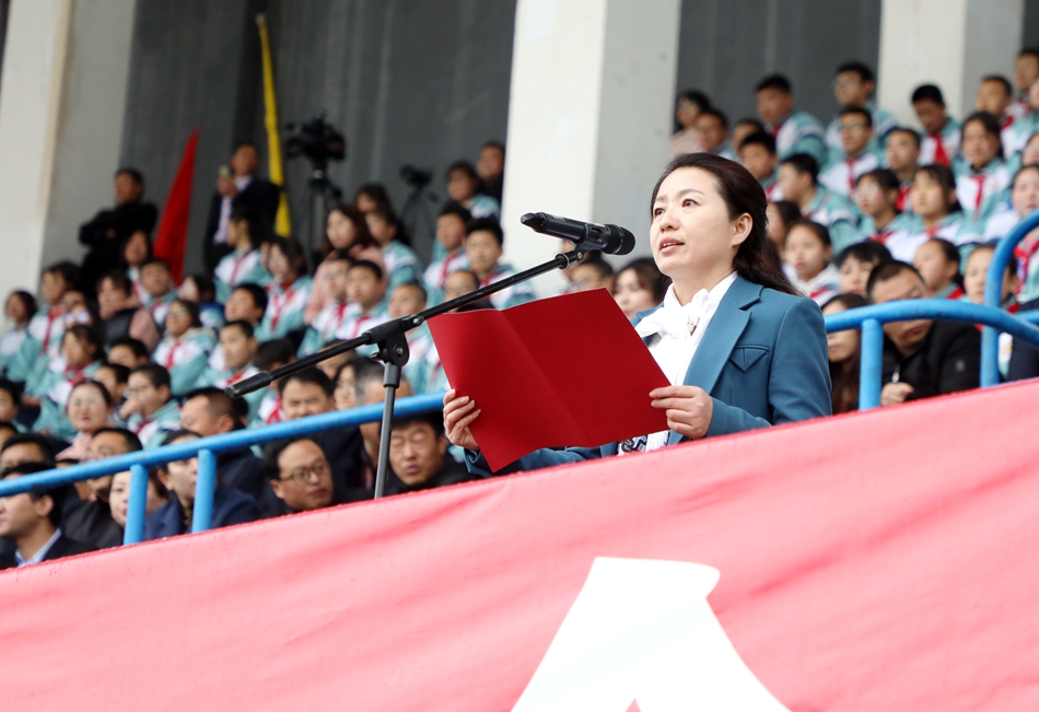 县委副书记、县长李菊霞代表县四大组织,对本届运动会的顺利召开表示热烈的祝贺。李菊霞指出,本次运动会,既是对全县学校体育工作、师生体育素质和精神风貌的一次大检阅,也是教育引导中小学生从小争当“实现第二个百年奋斗目标、建设社会主义现代化强国生力军”的一次大练兵。希望全体运动员顽强拼搏、服从裁判、相互尊重,比出青春活力、赛出高尚风格,展示自强不息、勇攀高峰的靓丽风采;全体裁判员严格执行竞赛规则和裁判标准,以高度的责任心高效、准确完成各项裁判工作;全体工作人员严守岗位职责,为比赛提供一流的安全保障服务,共同把本届运动会努力办成“文明、友谊、拼搏、向上”的体育盛会。