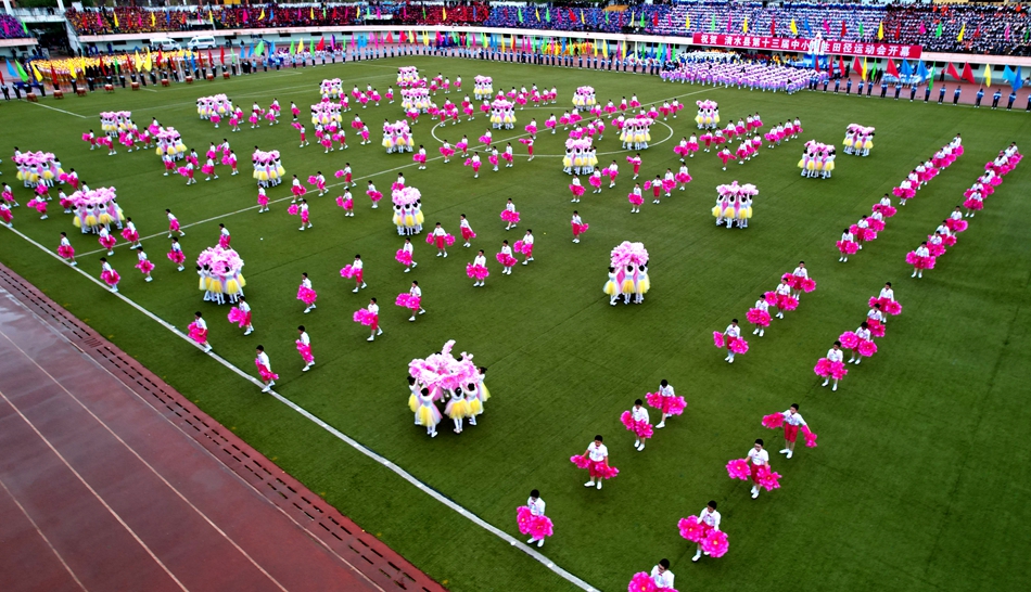 开幕式上,《舞狮少年志》《筑梦向未来》《花开新时代》《奋发新征程》等大型团体操精彩上演。整齐划一、动感十足的表演,充分展现了全县中小学生团结健康、奋进向上的精神风貌和青春活力。