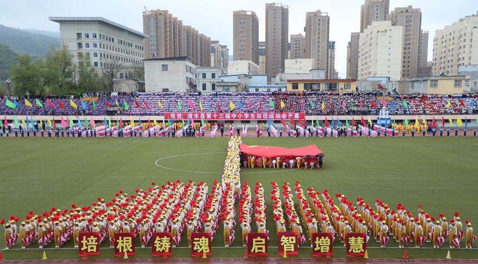 最美人间四月天,桃红柳绿带春烟。4月23日上午,清水县体育中心内彩旗招展、激情飞扬,全县第十三届中小学生田径运动会在这里拉开帷幕。