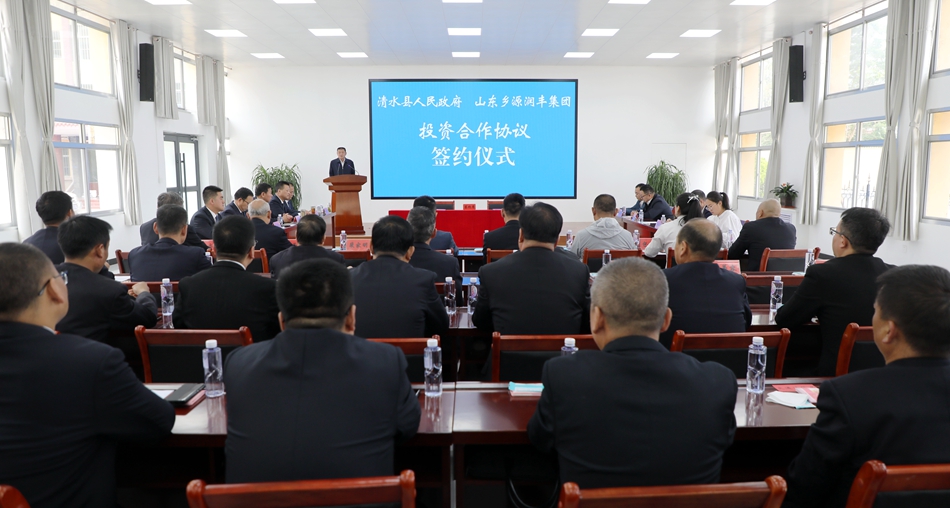 5月26日,清水县人民政府与山东乡源润丰生态发展集团有限公司举行合作项目签约仪式,标志着双方合作进入实质性阶段。市政协副主席、清水县委书记马越垠,山东乡源润丰生态发展集团有限公司董事长刘杰,县领导丁旺喜、蔡俊杰等出席签约仪式。