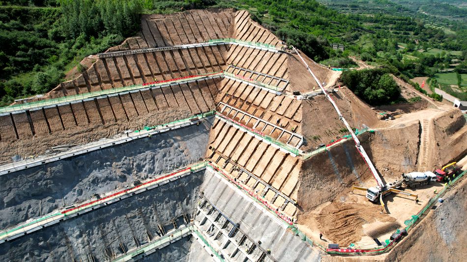 “目前,汤浴水库已完成项目部生活营地搭建,建设场区道路6条7.8kn,建成总储量12万立方米、总面积3300 平方米的砂石料筛分系统及储料仓,总储量500 吨的混凝土拌合站;导流泄洪冲砂洞总长232 米,已完成进出口土石方开挖27.5 万立方米,混凝土护坡喷护2314 立方米、现浇462立方米,完成洞身支护183米;坝基、消力池土方开挖9.5万立方米。工程总进度24%,争取到位专项债券1.1亿元,完成年度投资7100万元。”清水县汤浴水库项目法人黄斌说。