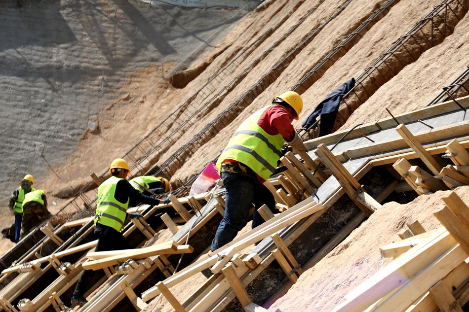 走进汤浴水库项目建设施工现场,装载运输车辆往返穿梭,大型挖机正开足马力进行消力池开挖作业,机器轰隆声在山谷间回荡,施工工人们分散在各自点位,紧锣密鼓地进行泄洪洞进口段高边坡支护工作,大家铆足干劲,全力以赴赶工期抢进度,呈现出一片片热火朝天的繁忙景象。
