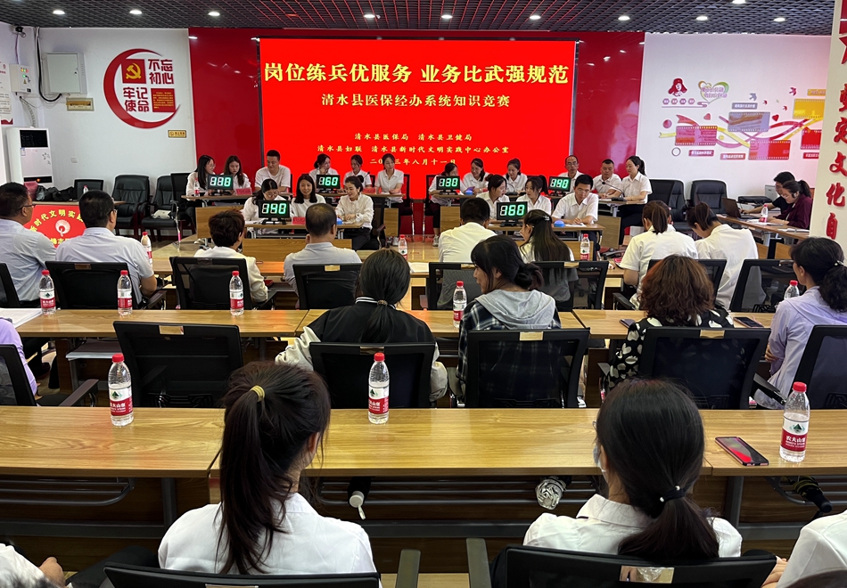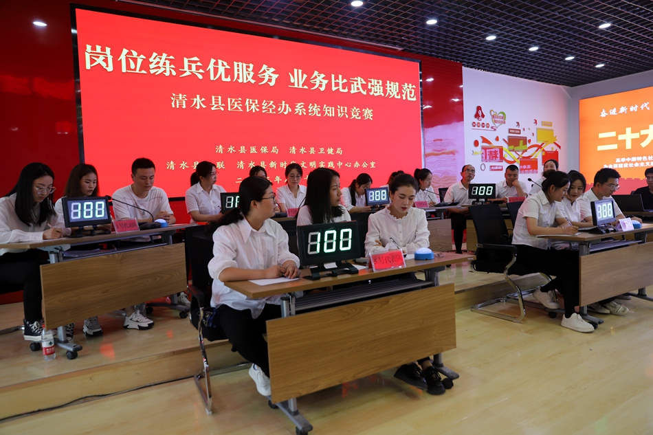 8月11日,清水县医保局举办“岗位练兵优服务,业务比武强规范”为主题的知识竞赛,来自全县的6支队24名选手参加竞赛。
