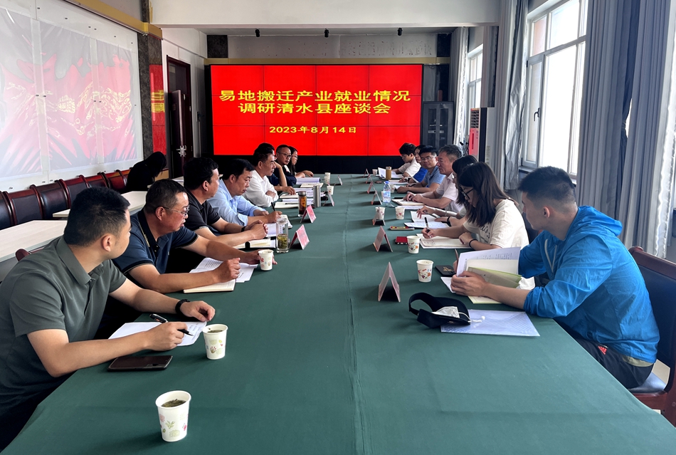 座谈会上,调研组听取了清水县易地扶贫搬迁情况汇报,详细了解各部门关于易地扶贫搬迁后续扶持管理体制、就业与培训、产业扶持、基础设施建设、社会保障等工作开展情况,并围绕当前存在的困难和问题进行了深入探讨交流。