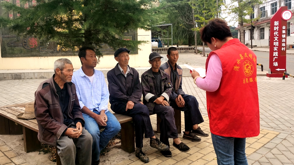 金集镇城科村党支部书记景建安告诉记者,“我们城科村新时代文明实践工作以宣讲党的政策为主线,‘小板凳’宣讲由支部倡导,大力推进村规民约‘红九条’宣传,解决群众身边的矛盾问题,同时注重培育、宣传、评选、表扬群众身边的榜样,用身边的好人好事激励、鼓舞、教育群众,村上的民风更淳朴了,基层社会治理初见成效。”