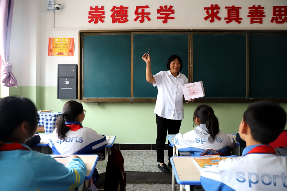 “我喜欢我的学校,并且我也喜欢我的英语老师,她对我们很好,她的英语课非常有趣,我们都非常喜欢上她的英语课,在将来我想成像她一样的英语老师。”清水五中七年级八班学生甘静怡说。