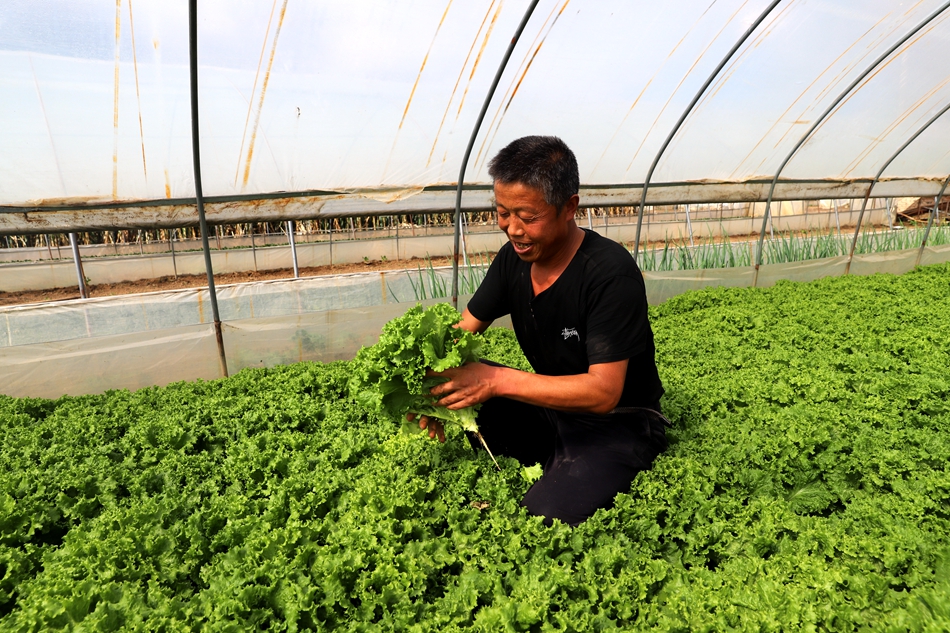 蔡志学正在和家人一起铲菜、称重、装袋。“我承包了园区六座棚,种植蔬菜,产量非常好,价格也不错,批发到周边县区的超市,每座大棚产量大约4000斤,经济效益很好。”蔡志学笑着说。