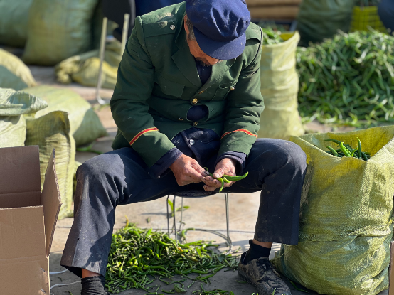 “在合作社干活一天能挣100多块钱,在家门口能赚这么多,还能照顾家里老人小孩,真是日子越过越红火,赚钱看家两不误!”正在挑拣辣椒的黄崖村村民王红霞说道。